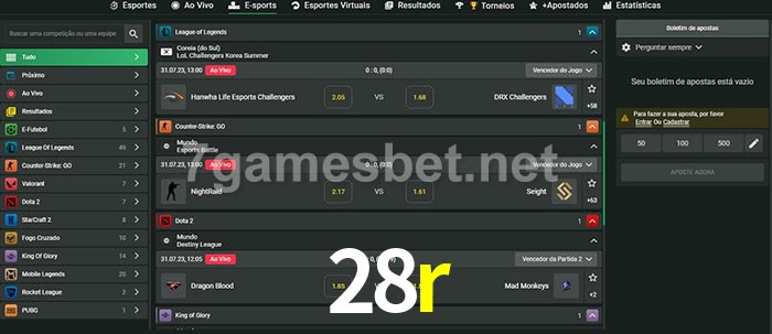 A aposta 28r oferece aos jogadores a experiência mais conveniente de apostas em eSports!